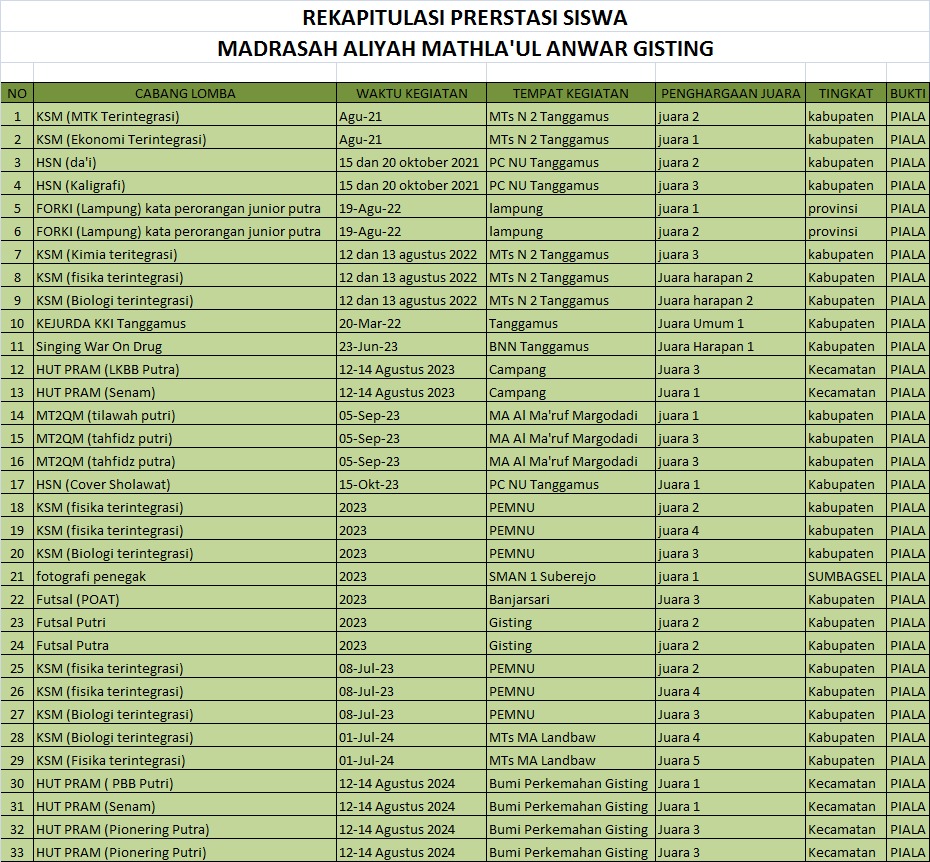 PROFILE MADRASAH ALIYAH MATHLA'UL ANWAR GISTING